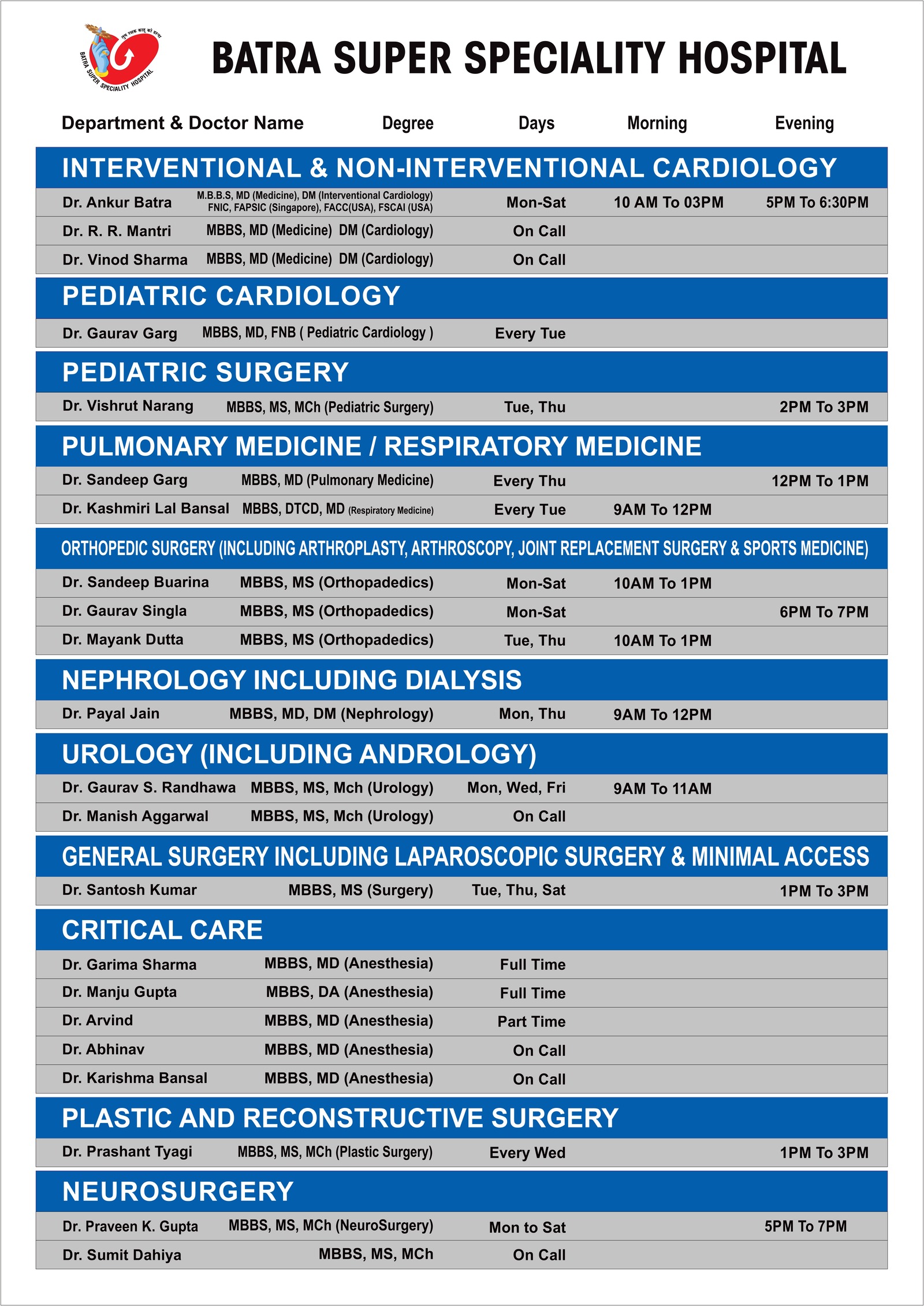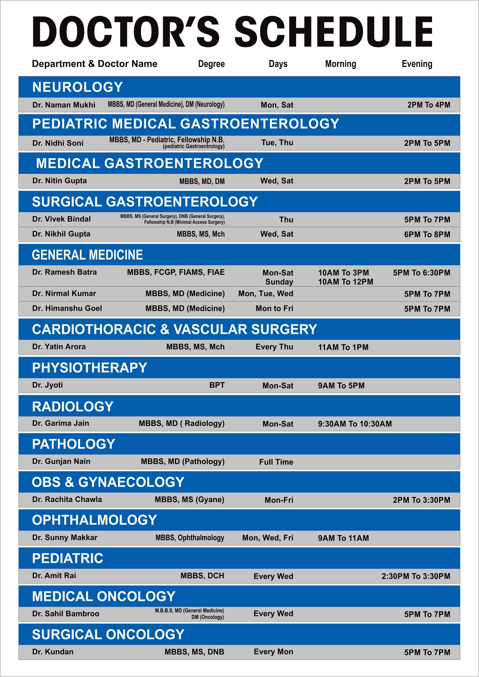 OPD Schedule